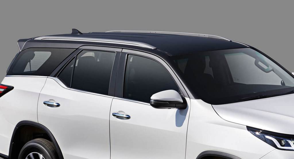 The Toyota Fortuner Legend’s side profile often showcases its modern and dynamic design. It has a muscular look with a dual-tone Black roof, which gives a luxury look to the Toyota Legender.